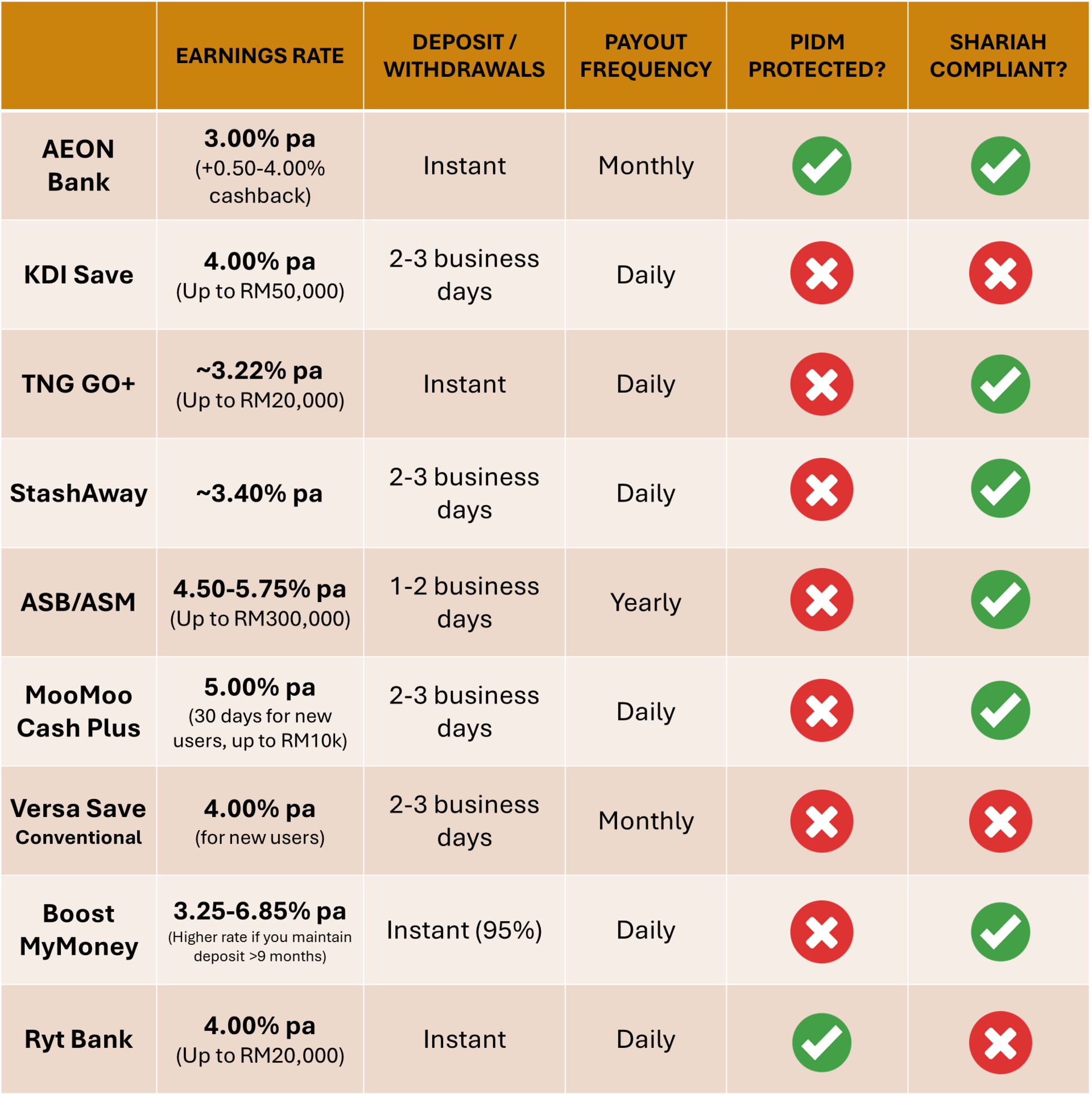With Bank Negara’s recent OPR reduction, most FDs have lowered their returns, from 3.70-4.00% pa to 3.30-3.60% pa, but they are still a decent place to grow your savings because they offer safety and predictability.